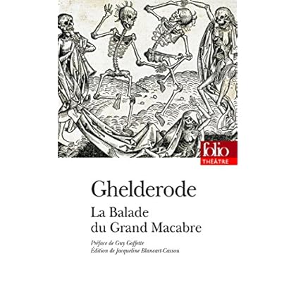 La Balade du Grand Macabre (1935), du grand écrivain d'origine flamande, est une farce foisonnante, truculente, fleurie, qui reprend un thème ancien, celui de la Mort en personne venue " se balader " sur terre pour faucher tous les vivants, et se laissant entraîner à boire au point de passer elle-même pour morte. C'est en Breugellande, pays de Bruegel, que se déroule l'aventure, et ce sont de joyeux drilles qui enivrent la Mort, la croient morte, et se croient morts eux-mêmes au terme d'une prétendue fin du monde. Mais la Mort n'était qu'un fou qui se prenait pour elle ; le pays est débarrassé des méchants, morts de peur ; seuls survivent les joyeux compagnons, et deux amoureux qui referont le monde. Tout finit par la victoire de la vie et de l'espoir.
